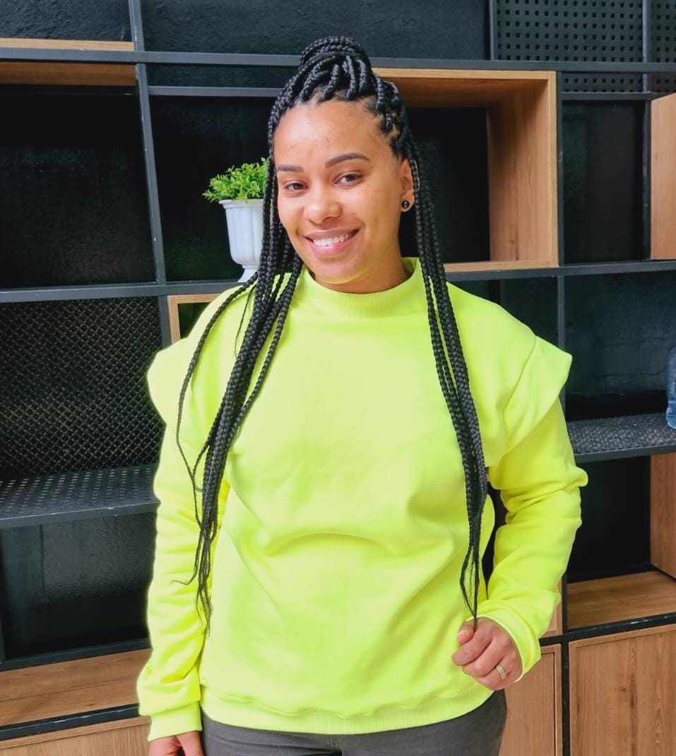 Moletom Feminino FEMD, Cor Amarelo Flúor, SILK FEMD na manga tom sobre tom.